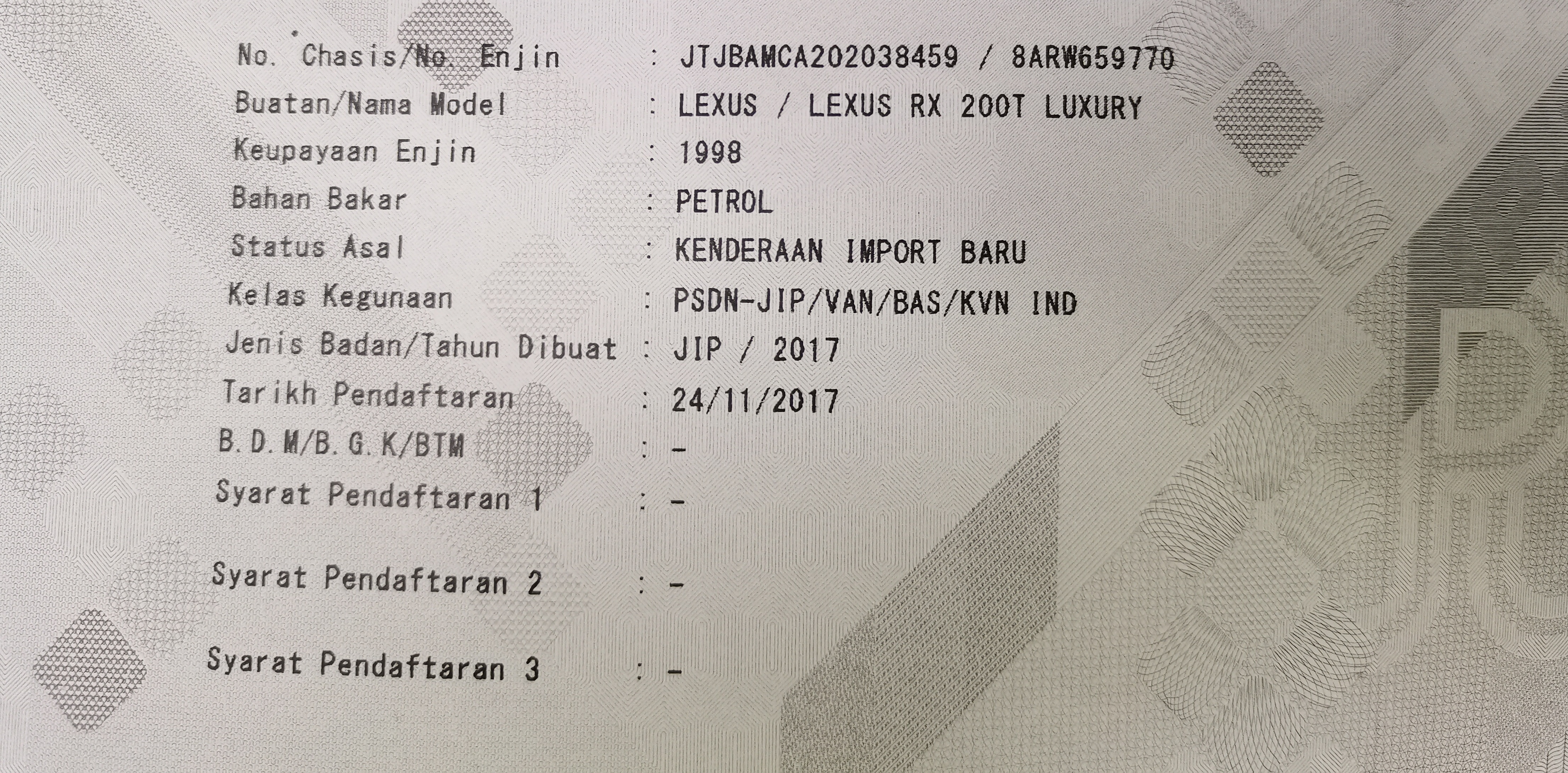 2017 LEXUS RX200T LEXUS RX200T 2.0cc VERSI L MODEL (A)
