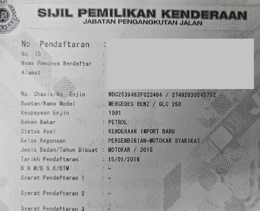 2015 MERCEDES-BENZ GLC 250 SUV AMG LINE (CBU) (PERCUMA 2 Y WRTY) REGISTER 2016