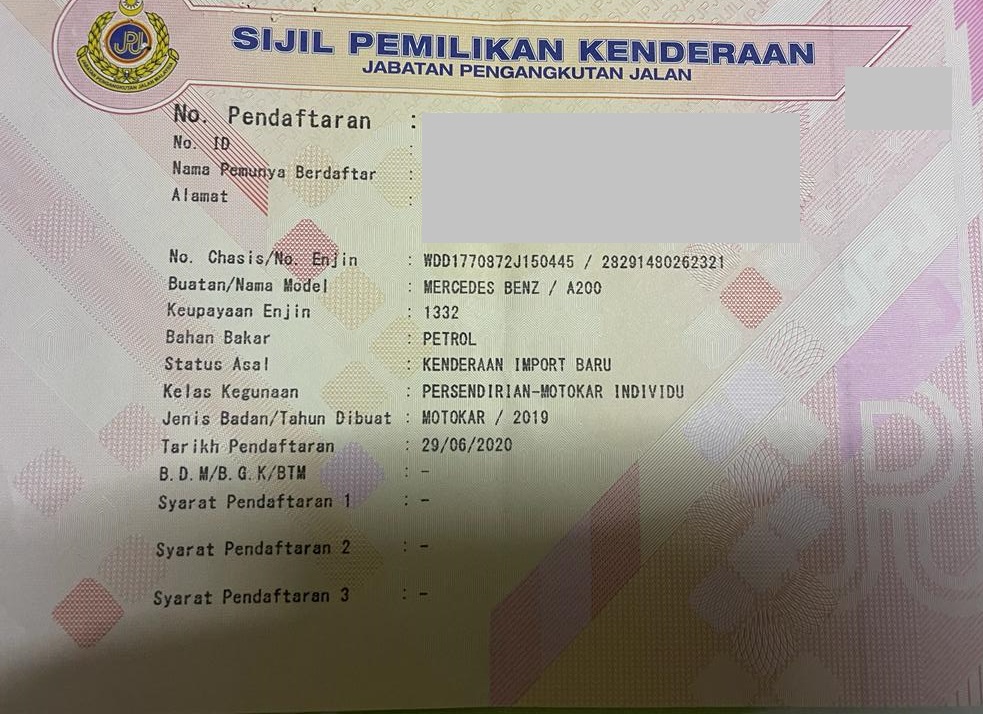 2019 MERCEDES-BENZ A-CLASS A200 1.3cc PRORESIF (CBU) (UW06/2024) REG 2020