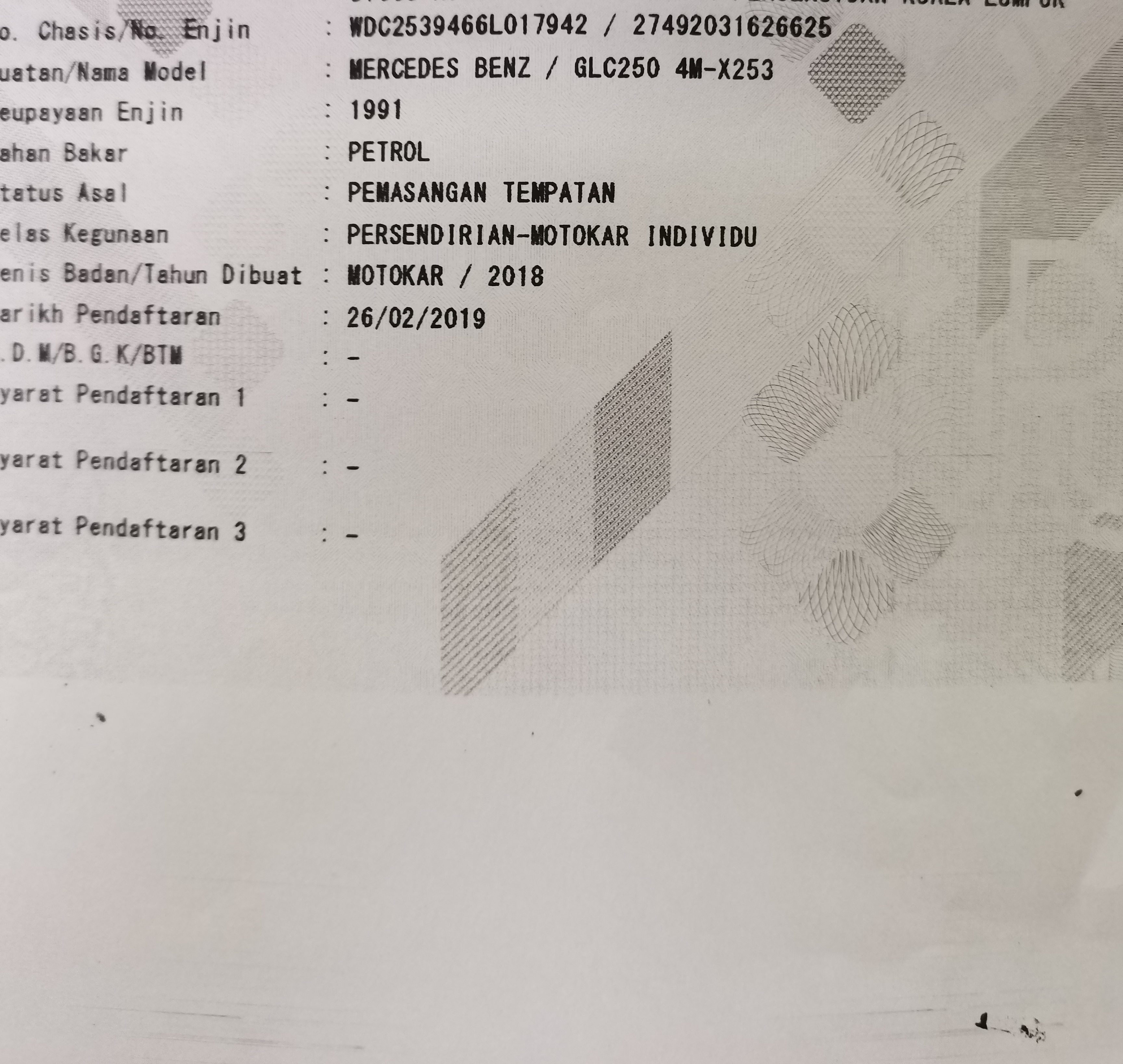 2018 奔驰GLC250 2.0 MATIC AMG 注册 2019