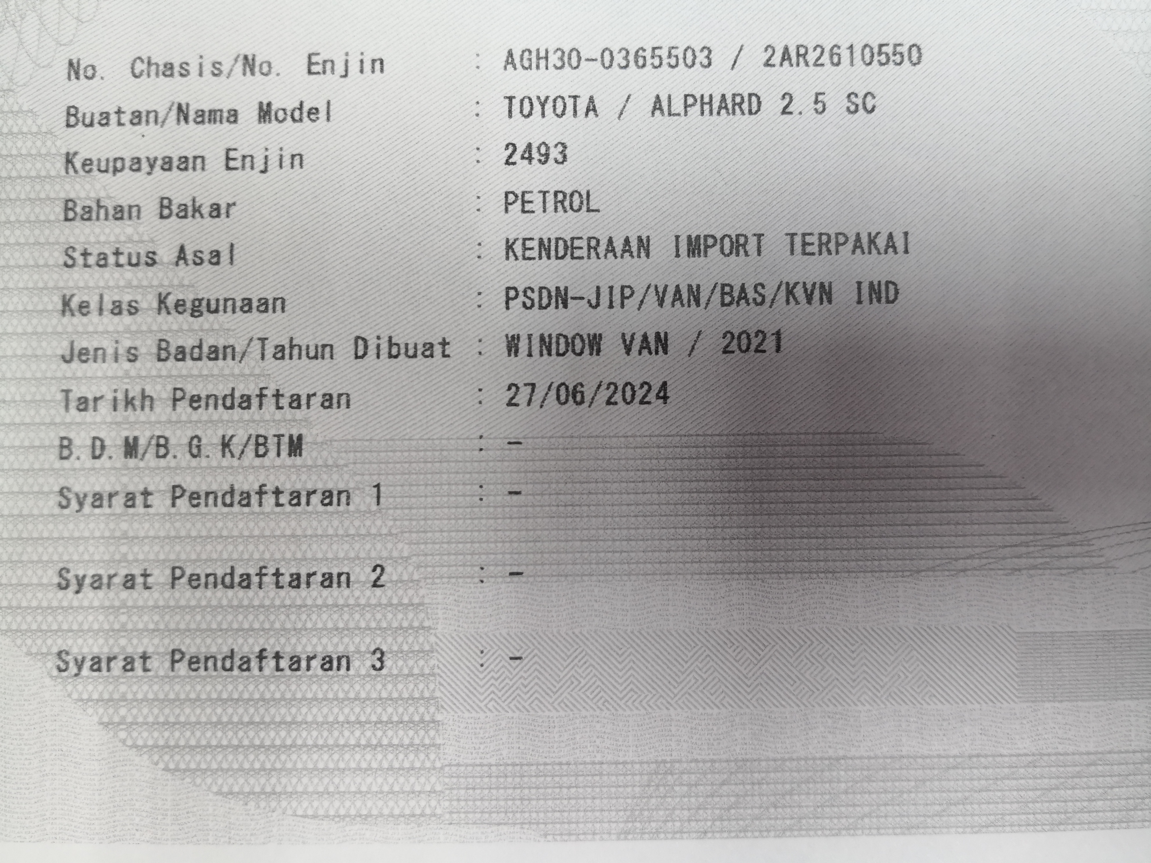 2021 丰田ALPHARD 2.5 SC 飞行员座椅 Pre Reg 2.xx 银行利率天窗 DIM BSM 满载 ((( 5 年度保修 )))